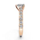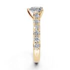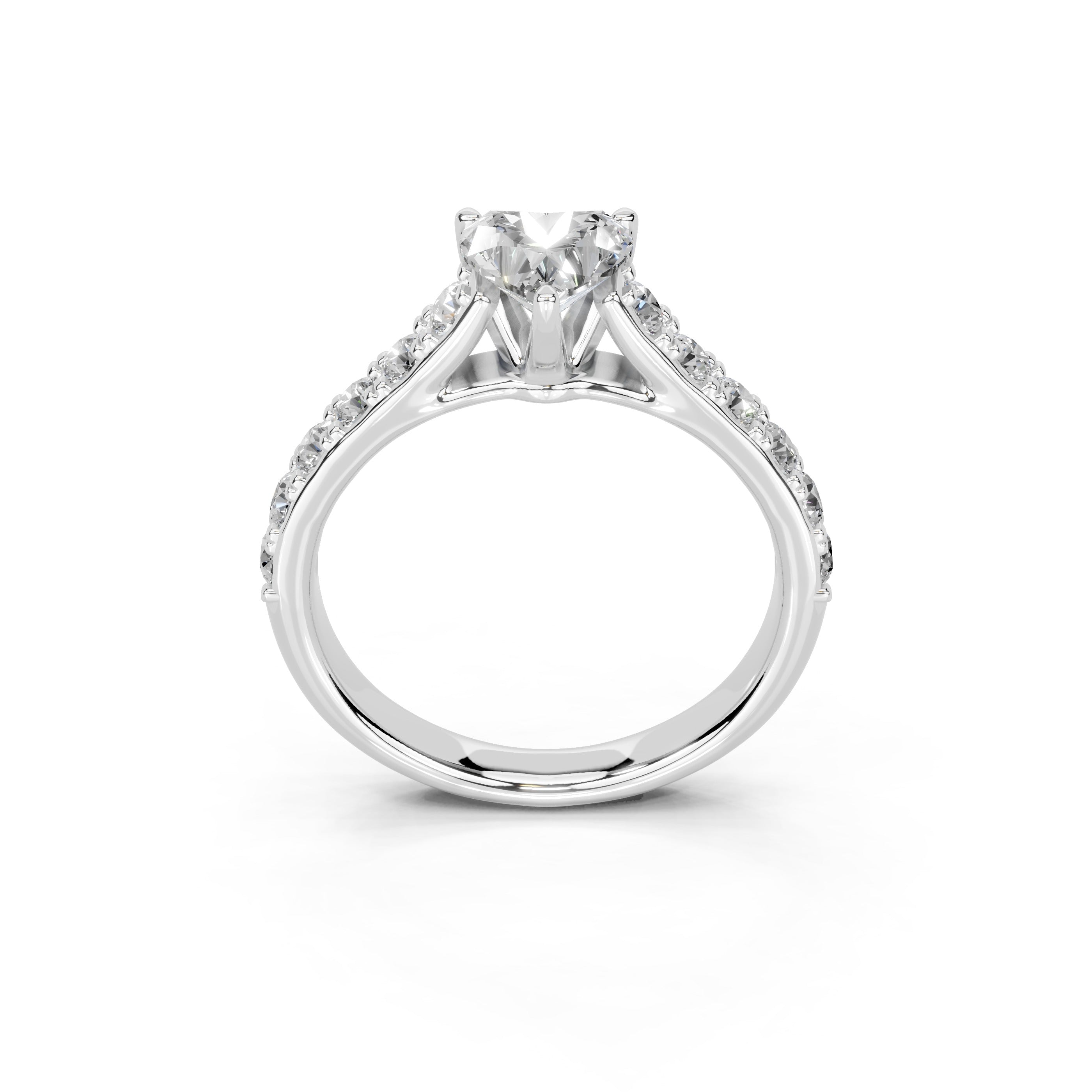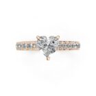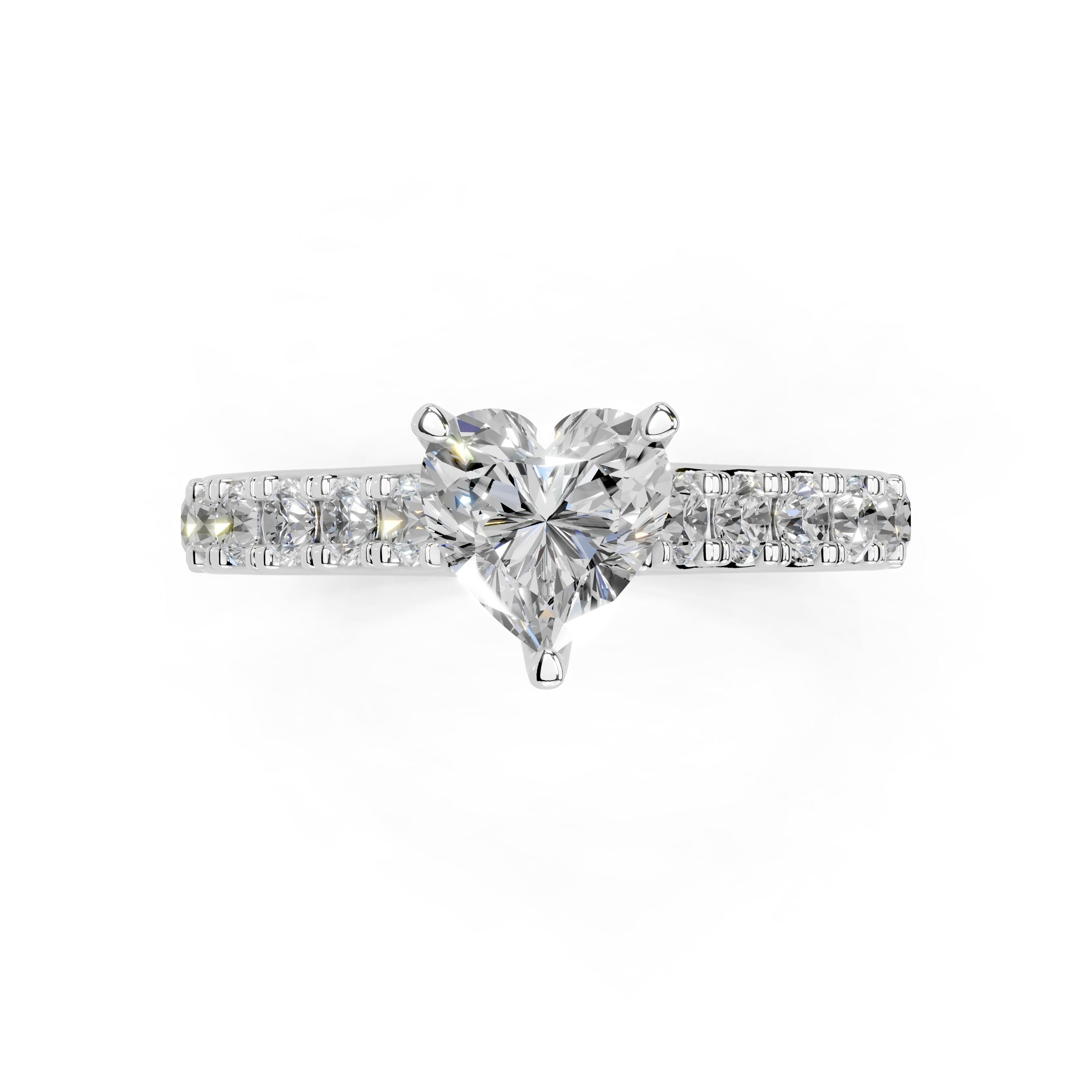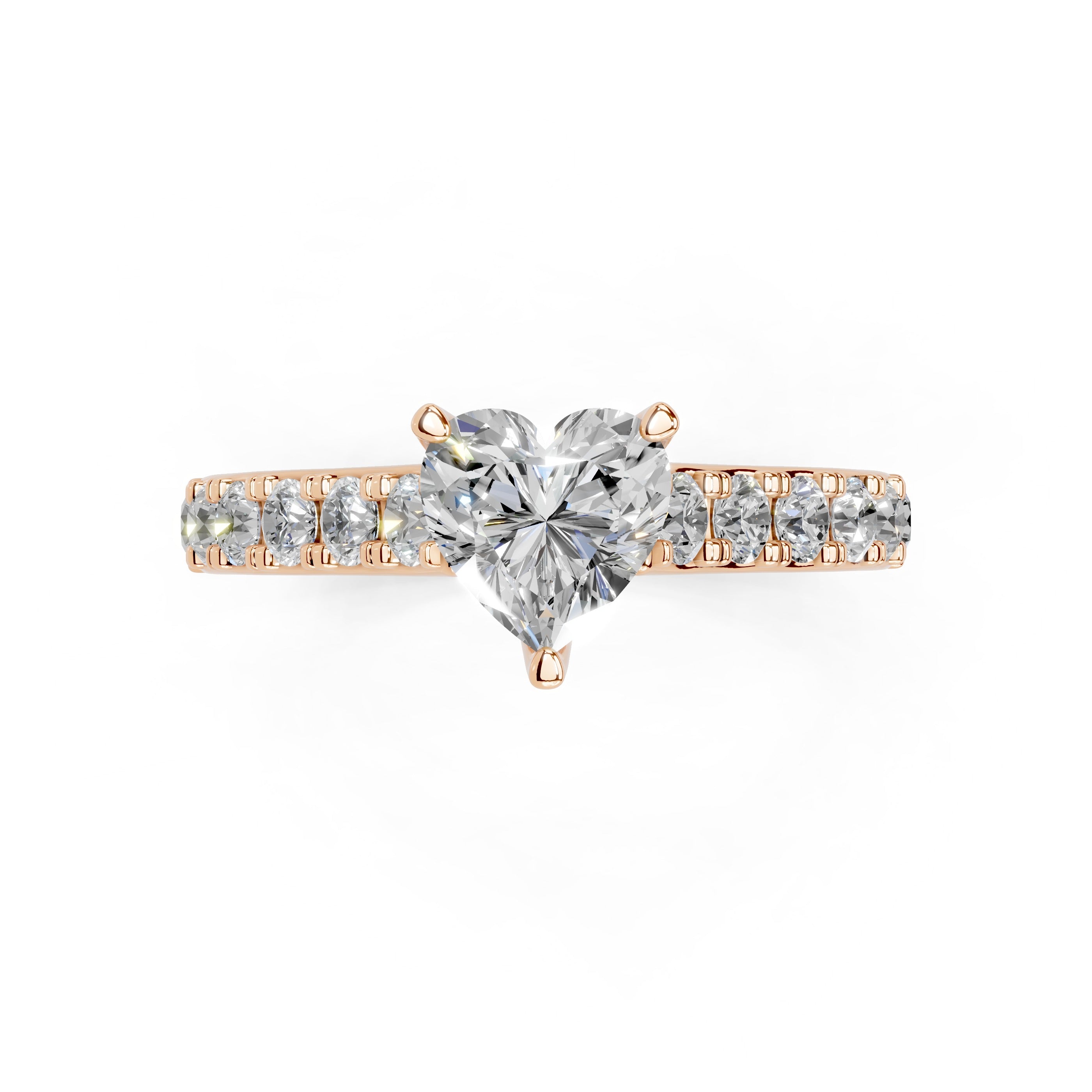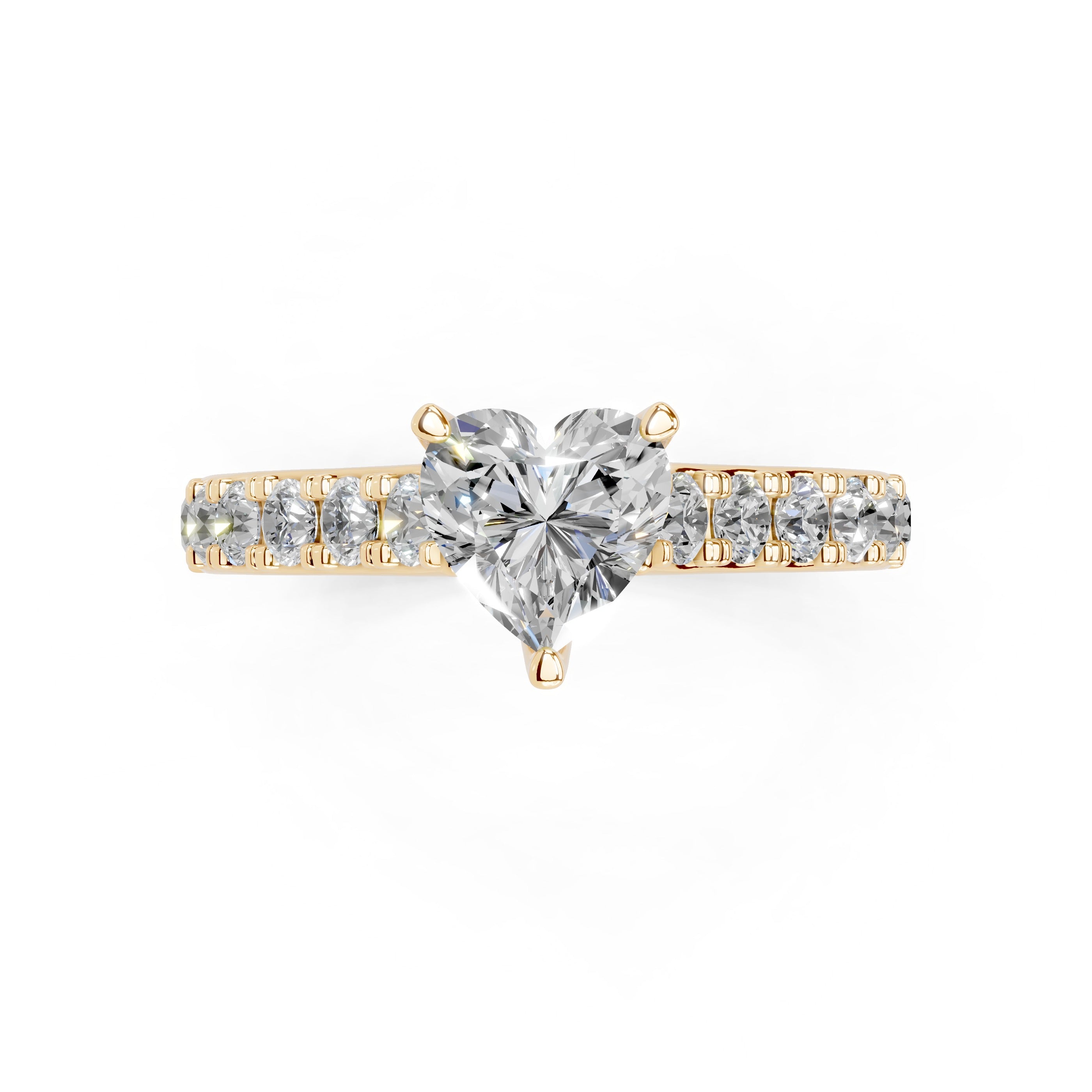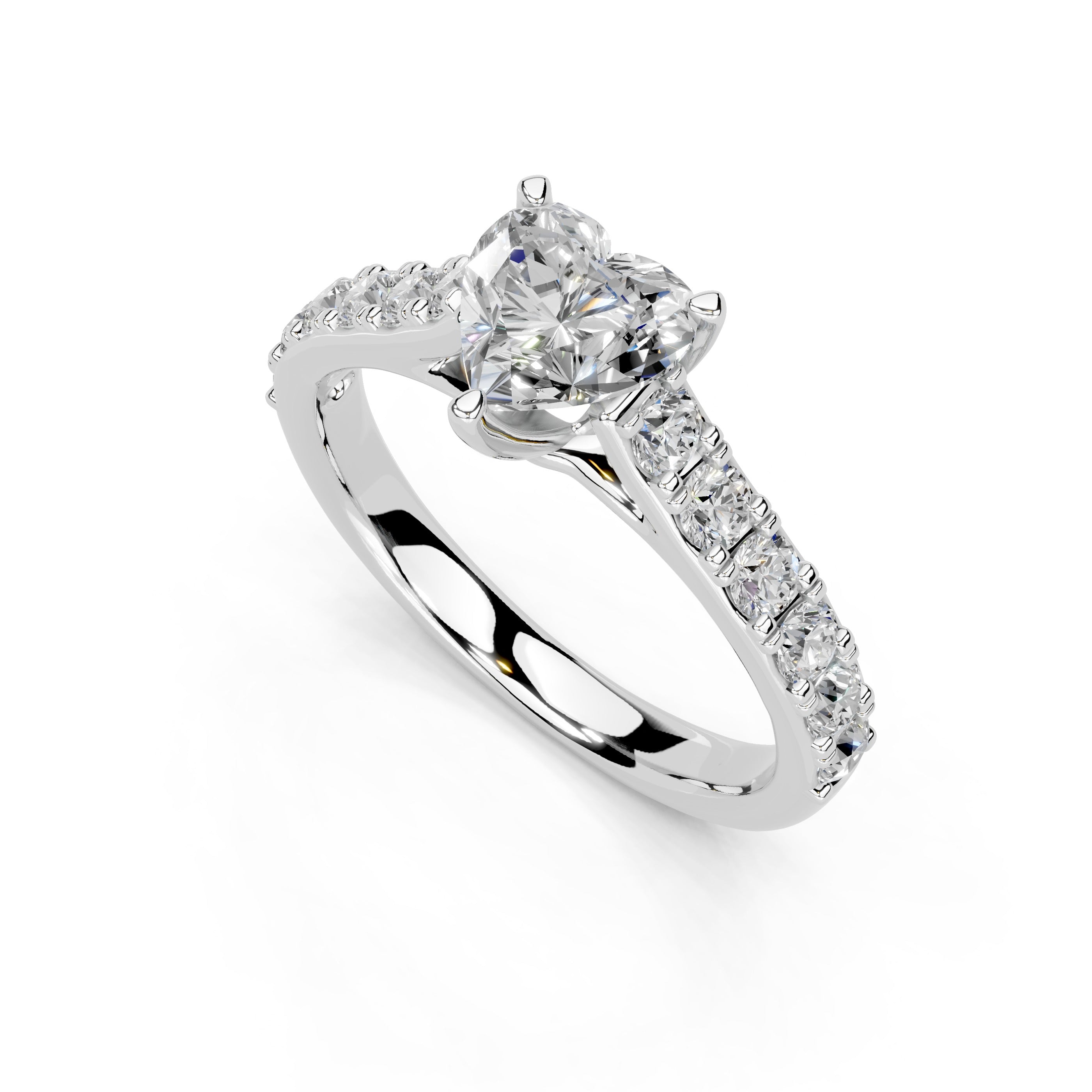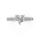 Engagement Ring Style: The Heart Cut Claw Prongs Pavé Lab Grown Diamond Engagement Ring showcases a captivating heart-cut diamond at its center, securely held by claw prongs that accentuate its romantic and unique shape. The band is elegantly adorned with pavé-set diamonds, adding a shimmering layer of brilliance that beautifully complements the center stone, creating a blend of timeless romance and modern elegance.