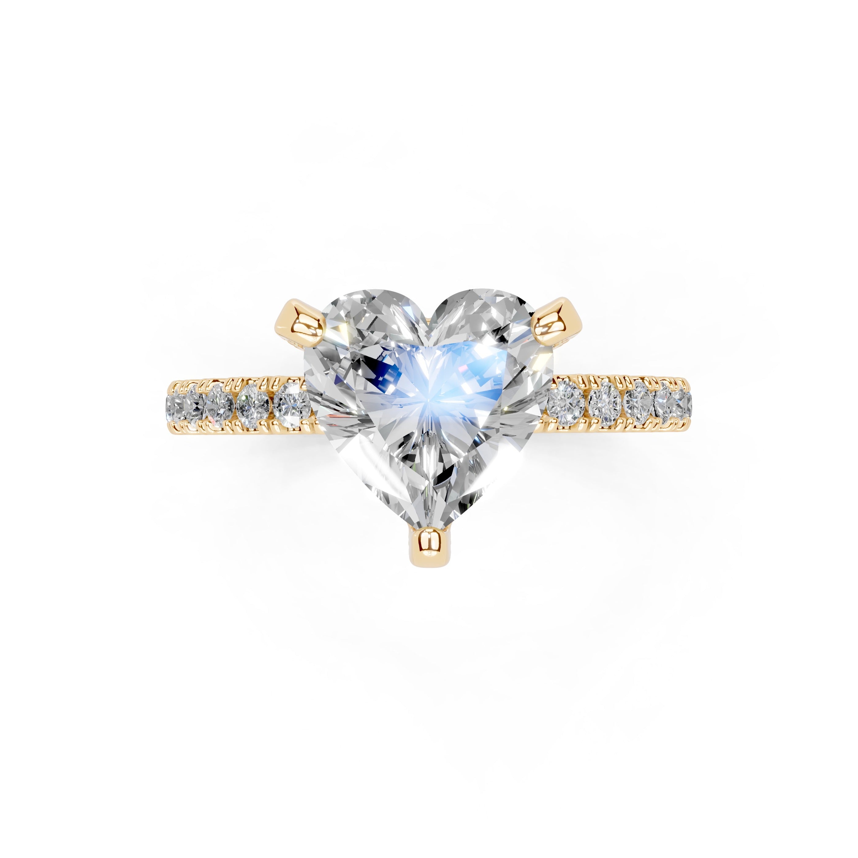 Engagement Ring Style: The Heart Cut Hidden Halo Pavé Lab Grown Diamond Engagement Ring features a captivating heart-shaped diamond at its center, elegantly secured by claw prongs that enhance its romantic silhouette. A hidden halo of diamonds surrounds the base of the center stone, adding a subtle yet breathtaking sparkle. The band is adorned with pavé-set diamonds, offering a harmonious blend of timeless romance and modern brilliance.