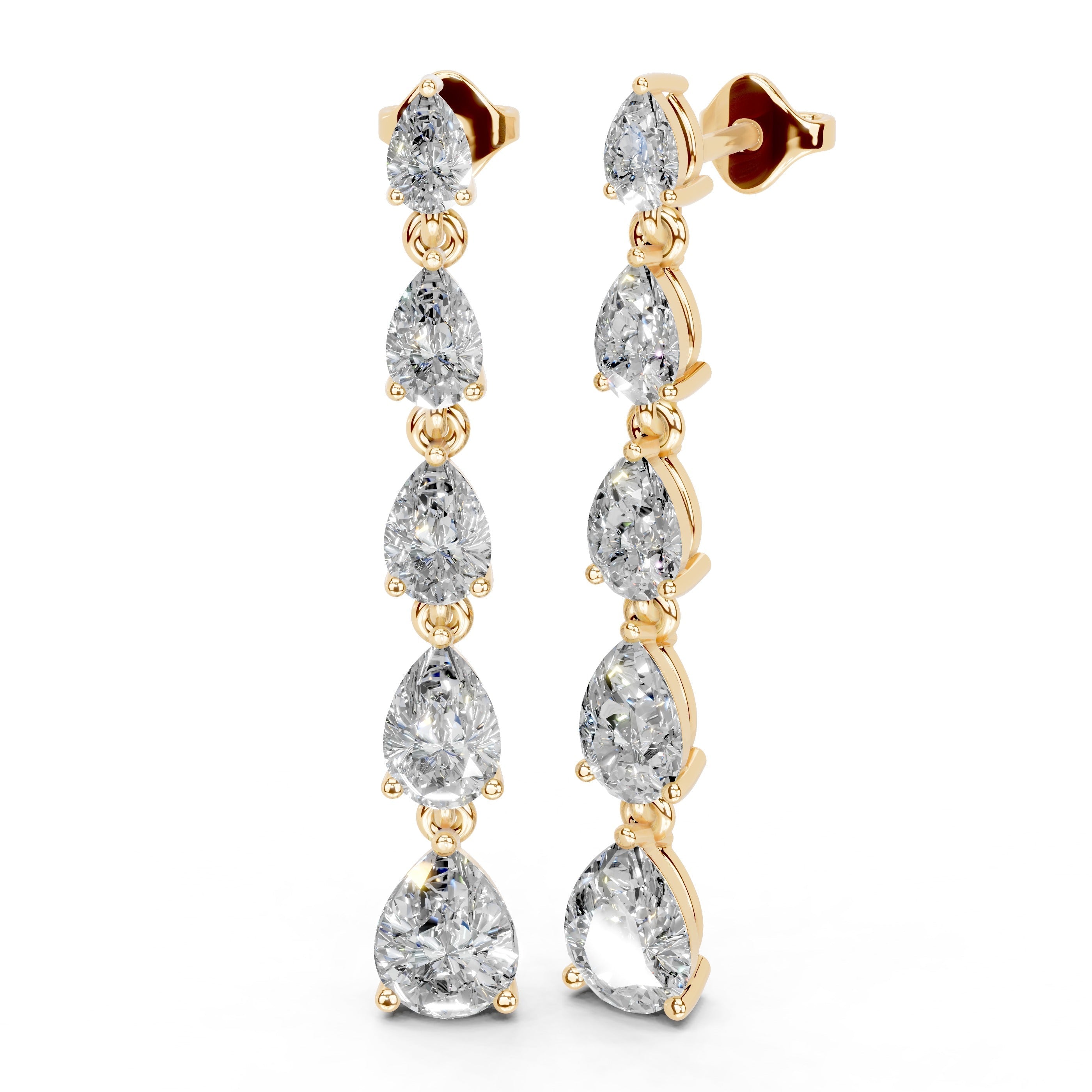 - Earring Style: Long Drop Pear Cut 4.5 cttw Lab-Grown Diamond Earrings; these elegant earrings feature pear-cut diamonds in a dramatic drop design, totaling 4.5 cttw for a striking and sophisticated look.