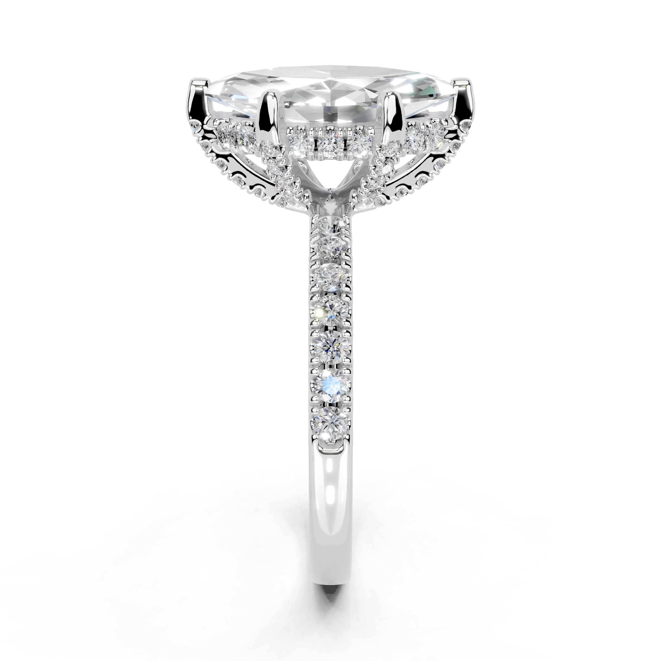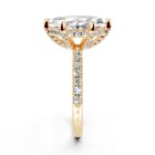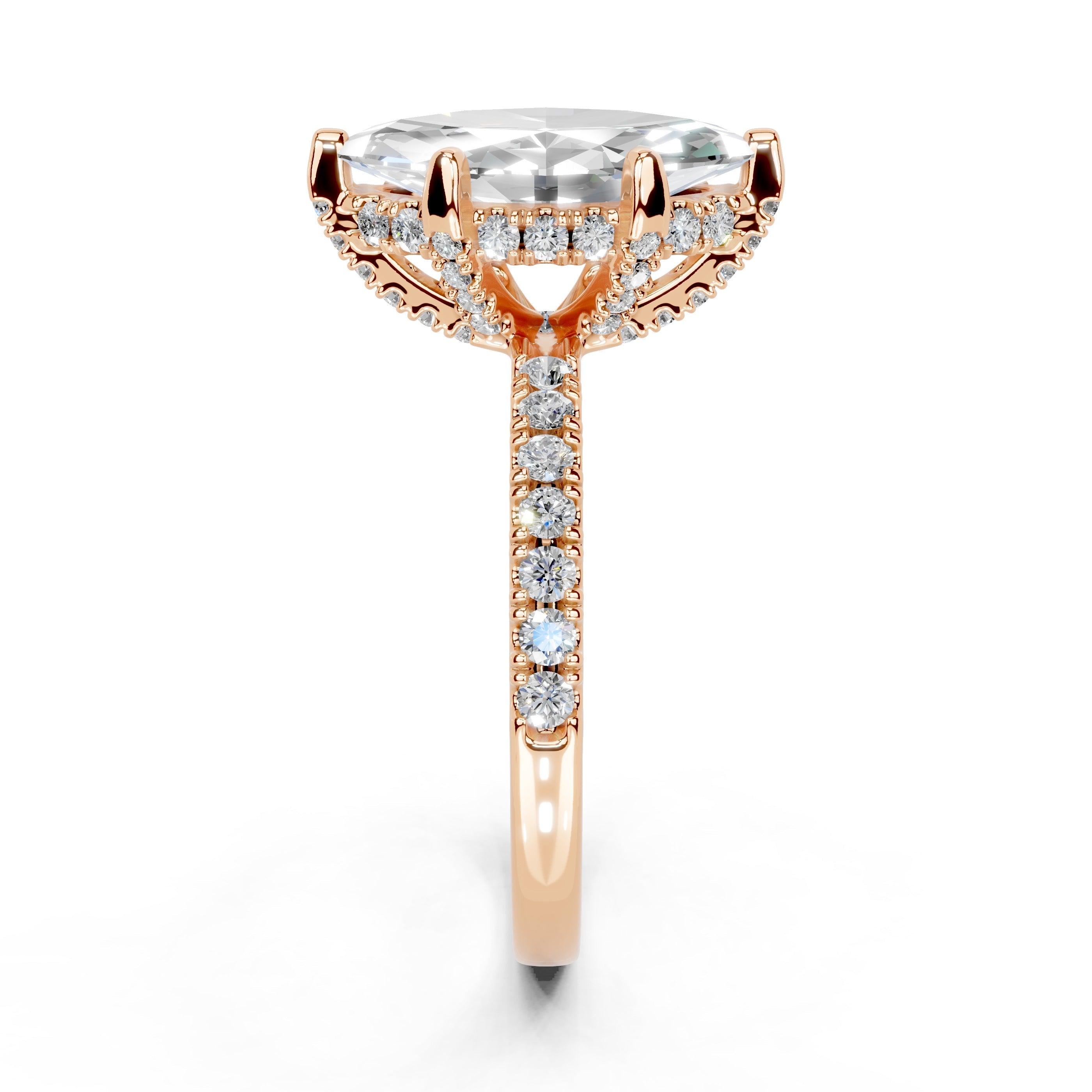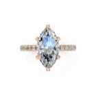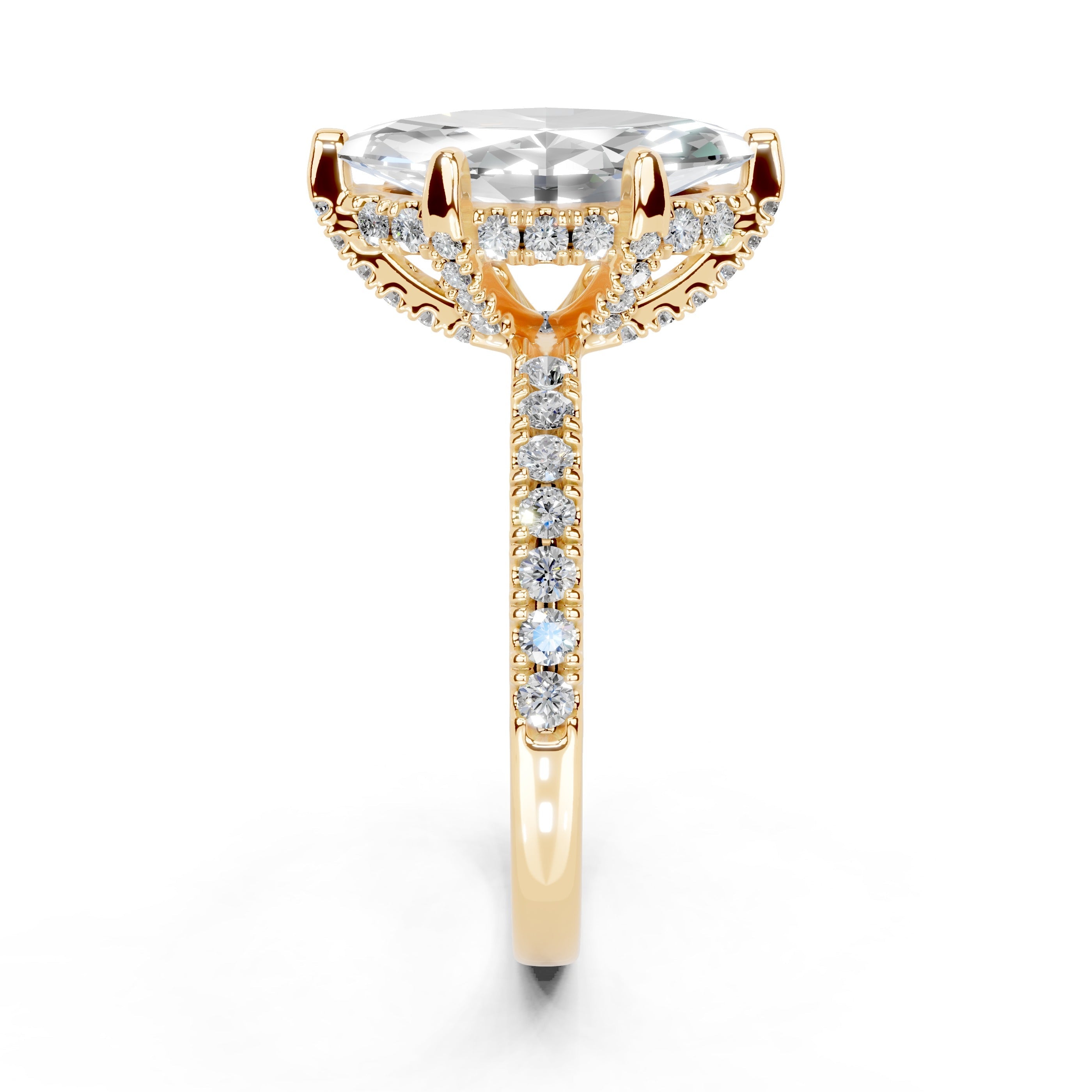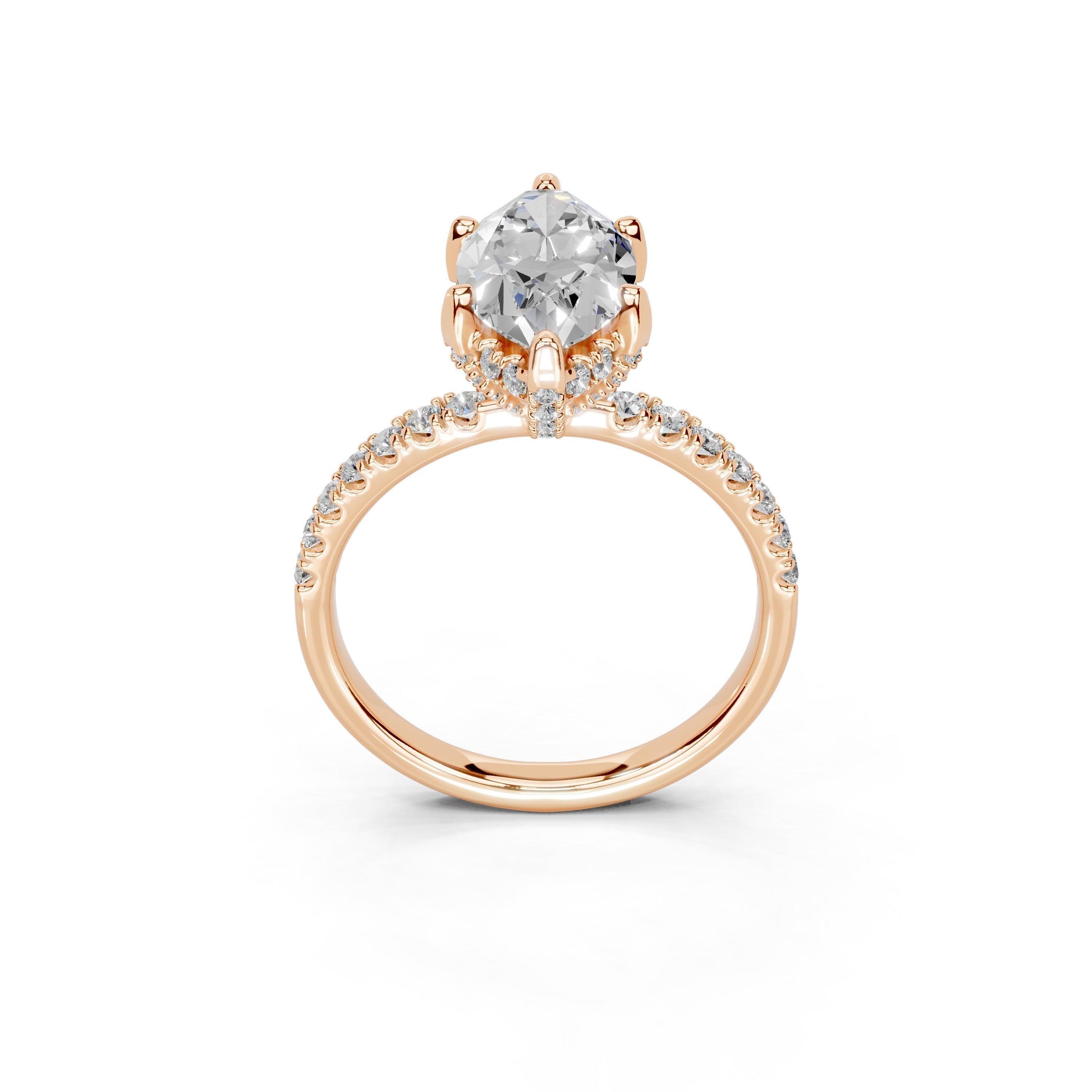 Engagement Ring Style: The Marquise Cut Hidden Halo Pavé Lab Grown Diamond Engagement Ring features a breathtaking marquise-cut diamond at its center, gracefully held by claw prongs that accentuate its elongated, elegant shape. A hidden halo of diamonds surrounds the base of the center stone, adding a delicate yet stunning layer of brilliance. The band is lined with pavé-set diamonds, creating a captivating blend of timeless sophistication and modern allure.